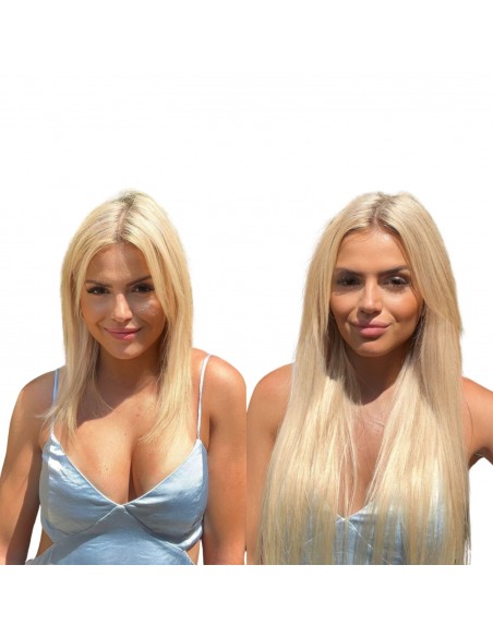 Plus de bandes, plus de volume, plus d’impact. Quatre bandes à clips Remy Hair 100 % naturelles pour une chevelure luxueuse, dense et lumineuse. Pose express, résultat digne d’un salon.
